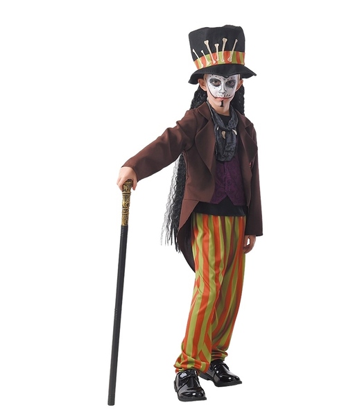 This child Voodoo costume is perfect for any Halloween celebration! Includes the hat, brown jacket with purple vest, pants and scarf. Costume is a size large (designed to fit a child between approx. 130cm - 140cm in height.)