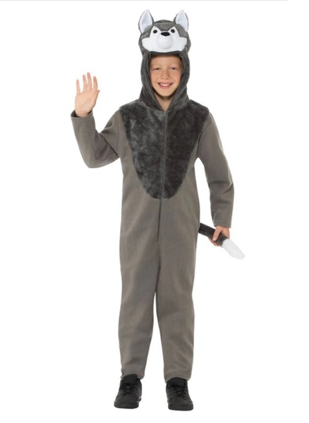 This child wolf one piece suit costume is perfect for any costume party, especially for a Book Week celebration! This costume includes hooded jumpsuit ONLY. Costume is a size large (approx. 10-12 years old, 145-158cm in height.) Sure to be a memorable costume!