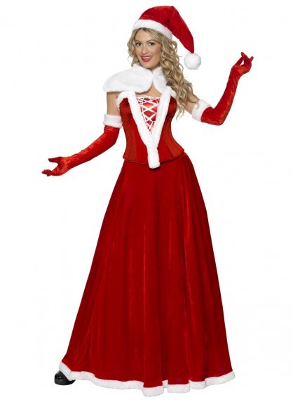 This adult luxury Miss Santa costume is perfect for any Christmas celebration! This costume includes the hat, cape, corset, skirt & gloves. Costume is a size small (designed to fit a women's UK size of approx. 8-10 - see chart for approximate sizing.)