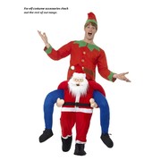 This adult Christmas Santa piggy back costume is perfect for heaps of different occasions! This costume includes the one-piece step-in suit and mock legs (white shirt and elf costume accessories shown in the images - shirt and hat - are not included.) Costume is a one size fits most style (fits a waist of approx. 30" - 36" / 76-91 cm.)
