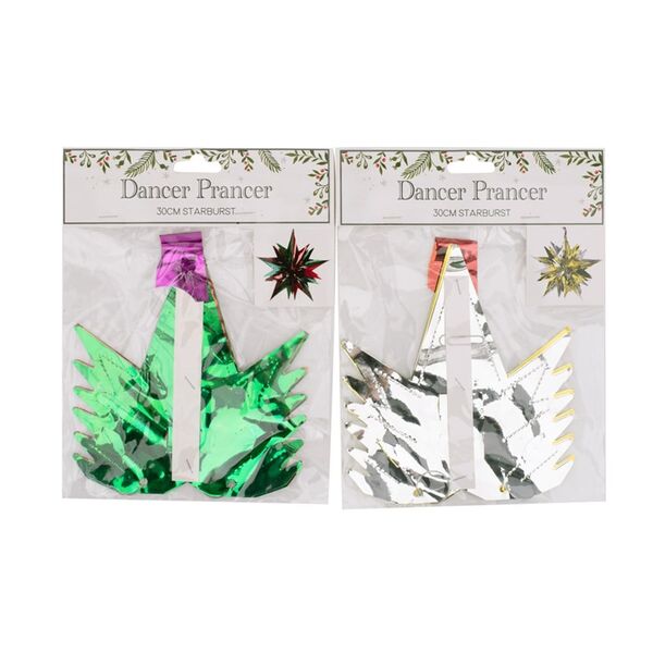 Each pack contains 1 foil starburst decoration in either green/red or gold/silver colourway measuring approx. 30cm when assembled.