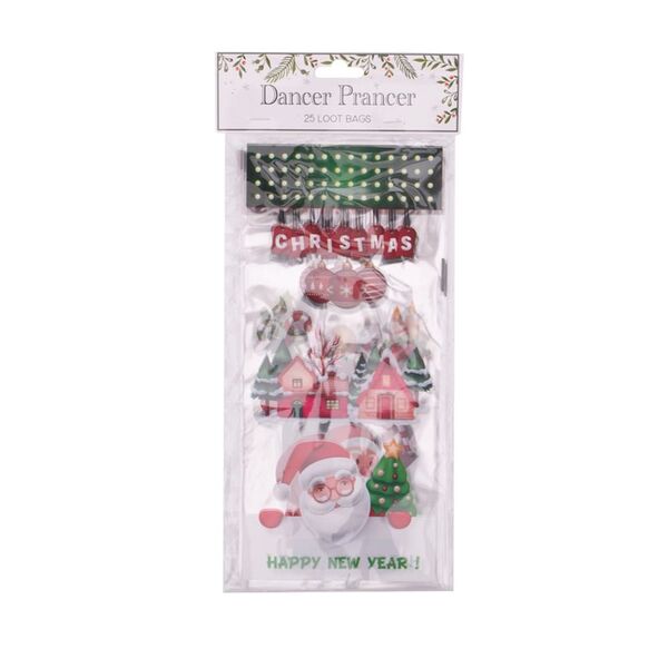 Each pack contains 25 clear cello bags - 5 different cute Christmas designs in the pack - and 25 gold twist ties.