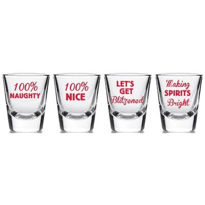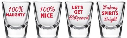 With catchy slogans such as '100% Naughty', '100% Nice', 'Making Spirits Bright' and 'Let's Get Blitzened' these glasses are ideal for Christmas parties or festive gift giving!