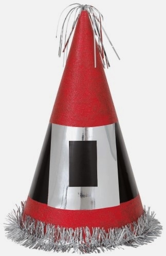 Giant cone foil cardboard hat with red glitter, perfect for any Christmas celebration! Measures approx. 33cm in height and has elastic attached to go under chin (designed to fit most adults.)