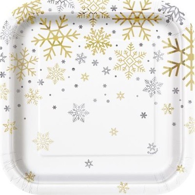 Silver & gold snowflakes paper plates, perfect for any Christmas celebration! Plates measure approx. 17.5cm x 17.5cm. 8 in a pack.