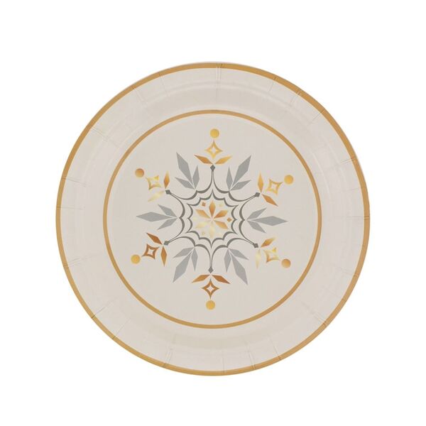 These delightful plates feature an ivory background with a delicate snowflake design in shades of pastel apricot & silver.