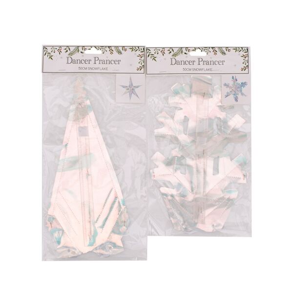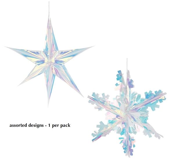 Each pack contains 1 iridescent foil decoration in either a star or snowflake design.
