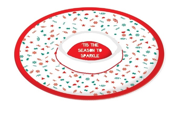 Christmas themed melamine 2 section platter, measures approx. 31cm in total diameter - perfect for any Christmas celebration!