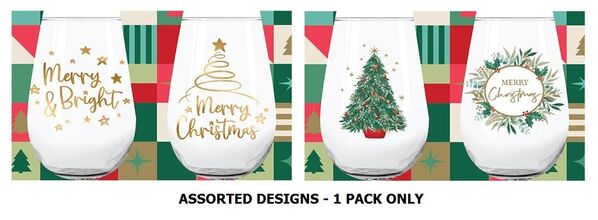 Each pack contains 2 clear glasses printed on one side with lovely festive designs: