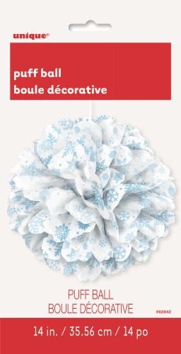 Perfect for any Christmas celebration, this white tissue paper pom pom with a snowflake pattern is sure to be a big hit!