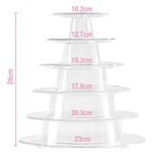The 6 layers reduce in size as they progress to the top creating a fun cone shape measuring 23cm diameter base layer to 10.2cm diameter top layer with height 26cm.