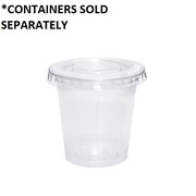 Pack of 100 clear plastic lids for clear plastic 1oz. / 30ml portion containers. Containers sold separately. Individual lids measure approx. 4cm in diameter.
