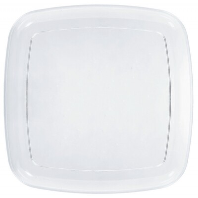 Clear plastic square tray platter, measures approx. 35.5cm x 35.5cm.