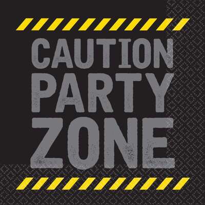 Your party guests are sure to love these napkins featuring a black background with bold 'CAUTION PARTY ZONE' wording.