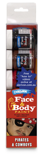 This handy face paint set is perfect for any cowboy or pirate themed party! This set includes 5 x 40ml jars of face paint (white, yellow, red, brown and black), 1 applicator sponge and 2 paint brushes, as well as face painting directions and examples to provide you with inspiration! Simply apply over a dried coat of barrier cream or moisturiser using the brush or sponge included in the pack, avoiding the eyes, mouth and nasal passages. Easily removed from skin and clothing with soap and water. Sure to be a big hit at the party!