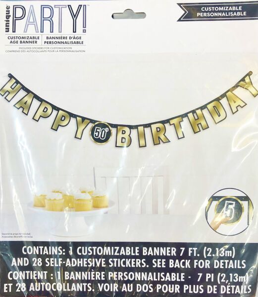 This stylish banner can be adapted for any age using the included stickers, making it a versatile decoration for your party!