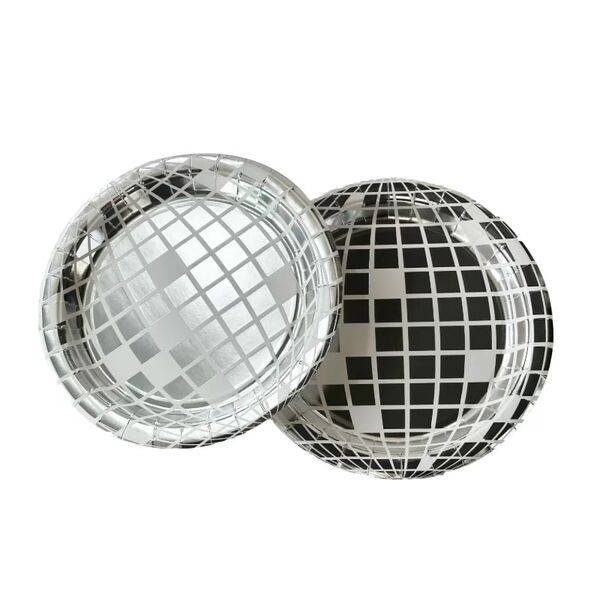 Your guests are sure to love the fun design of these plates featuring a fabulous silver disco ball.