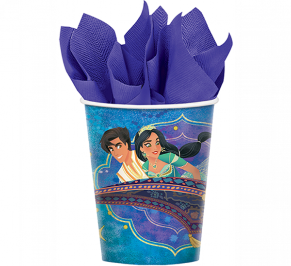 Pack of 8 Aladdin paper cups, perfect for any fan's party! Cups are each able to hold approx. 266ml of liquid.