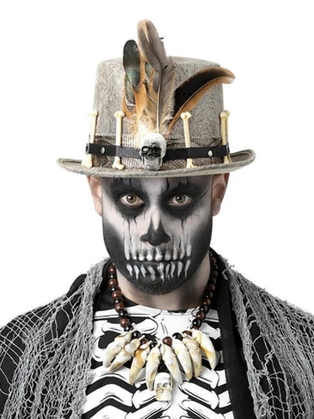 Add extra detail to your Voodoo Priest or Witch Doctor costume with this striking hat, blending the classic top hat with the mystical allure of voodoo.