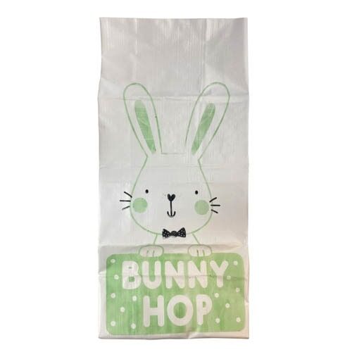 The bags are made from sturdy woven plastic fabric plastic and are printed with a fun Easter bunny design.