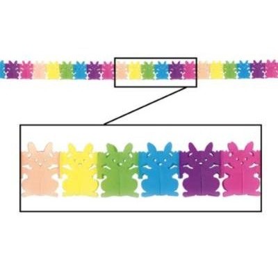 Easter bunny tissue paper garland decoration, measures approx. 13cm x 3.7m.
