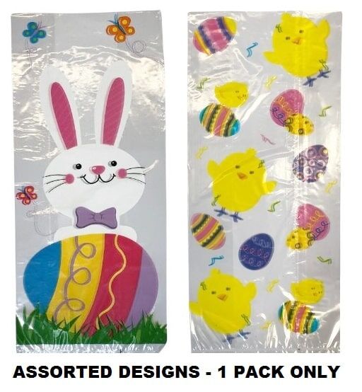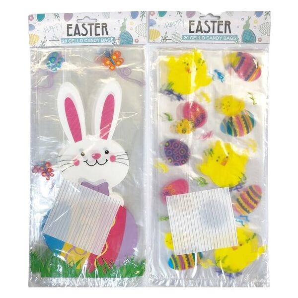 Each pack contains 20 clear cello bags with cute Easter themed designs - bunny or chicks - 1 design per pack.