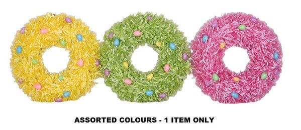The wreath is available in three colourways - pink, green, yellow - you will receive 1 wreath chosen at random from available stock.