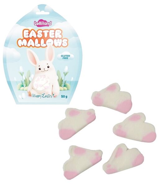 Each pack contains 50g of soft, squishy, gluten-free marshmallows in the shape of either a chick or bunny - a delightful non-dairy option for people with allergies or anyone wanting a different Easter treat!
