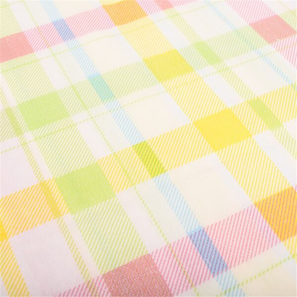 It has a plastic top surface printed with a lovely pastel gingham design and backed with a layer of soft flannel.