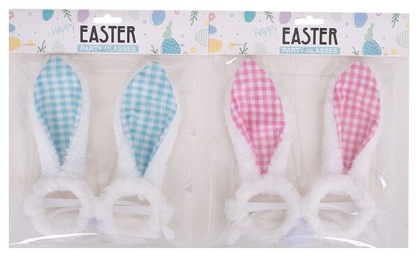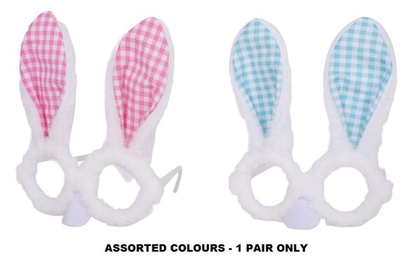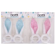 The frames are made from white plastic covered with white plush fabric with and have a pair soft plush fabric bunny ears with coloured gingham insert.