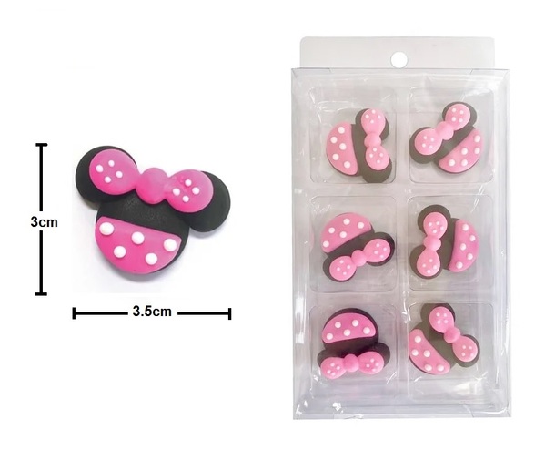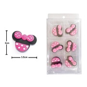 The pack contains 6 mini gluten-free icing decorations in the shape of Minnie's head and feature the classic round ears and pink & white spotty bow.