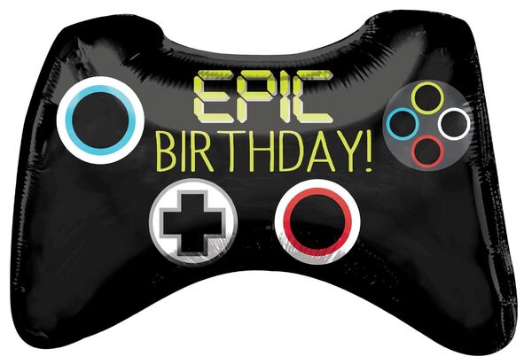 Featuring a fun game controller shape with printed buttons and 'Epic Birthday' message, it will look great on its own or as part of a larger arrangement.