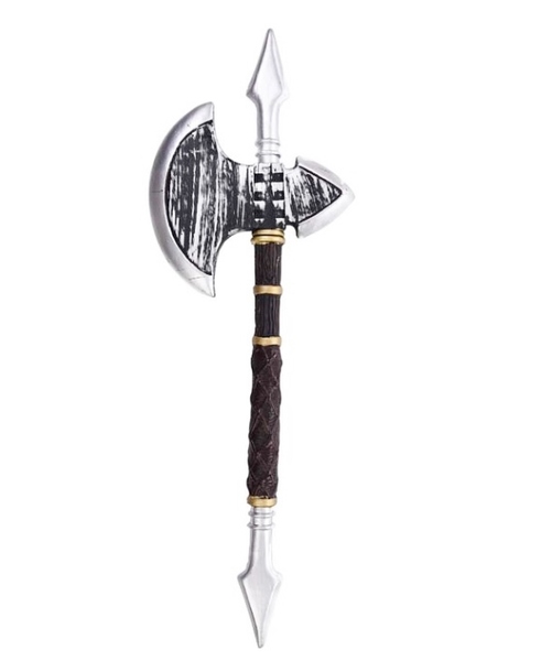 Fake plastic axe with spear head handle, measures approx. 60cm in length.