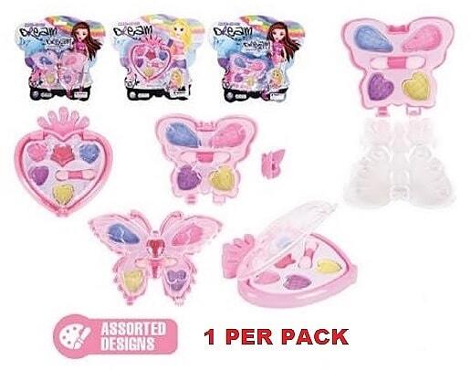 The kits are a variety of shapes such as heart or butterfly and contain assorted colour makeup sections and applicator - beautiful colours to create their own style - you will receive 1 kit chosen at random from available stock.