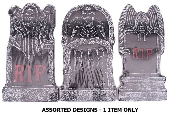 This lightweight foam tombstone features carved skull designs and RIP lettering - ideal for adding extra spookiness to your party decorating.