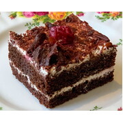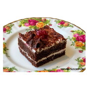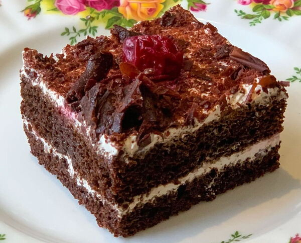 Layers of Chocolate Cake filled chocolate cream and topped with chocolate shavings - decadent & delicious!