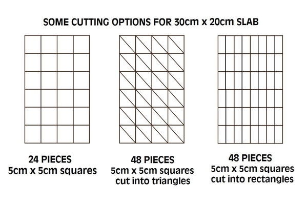 The slab is sold uncut so you decide the serving size - delicate bite sized squares or larger dessert size pieces - the choice is yours!