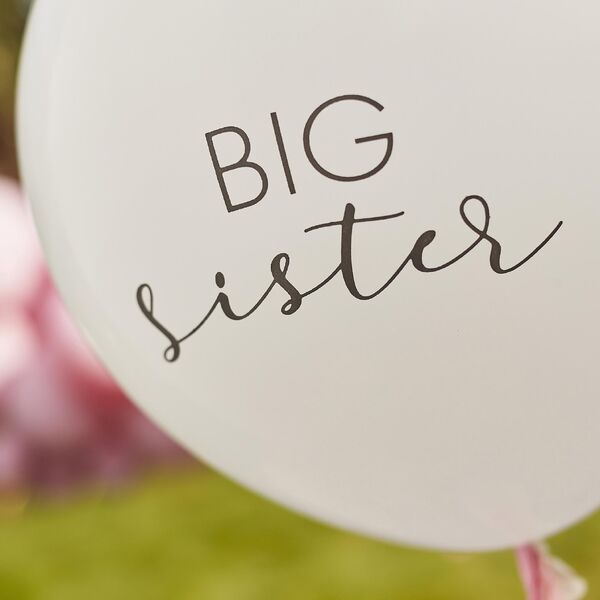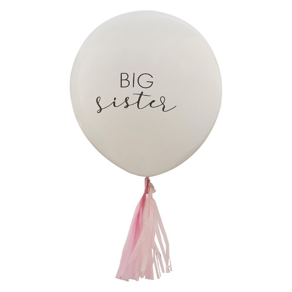 Each pack contains a large 'Big Sister' latex balloon & pink paper tassels.