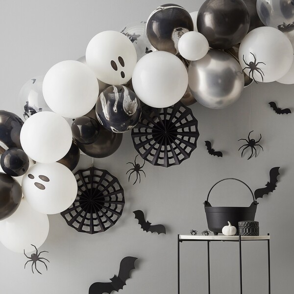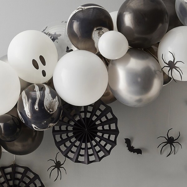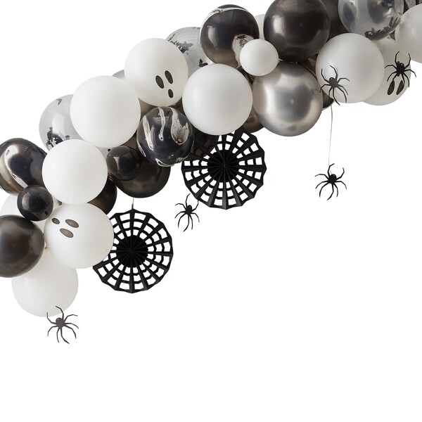 With ghost balloons, confetti bat balloons, dangling spiders and spiderwebs this balloon garland contains all the pieces to thrill your party guests - also perfect for your spooky selfies!