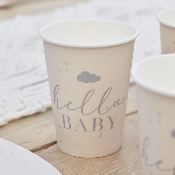 These 'Hello Baby' paper cups are the perfect design for a modern baby shower, with a cute design that will look stunning at any baby shower, and suit any theme.