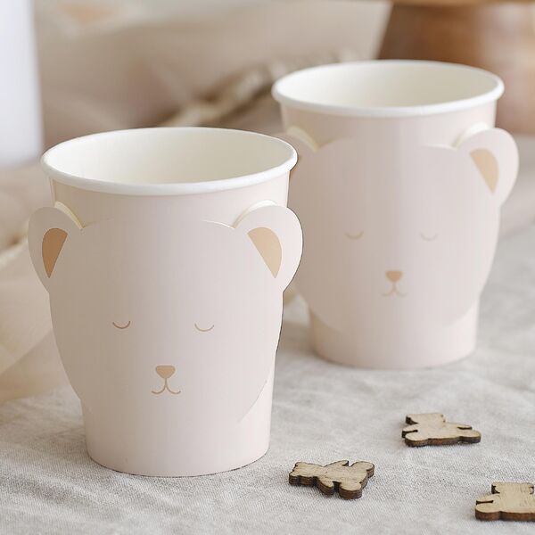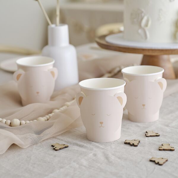 Fill your table with these charming paper cups featuring a sweet bear face & 3D pop-out ear detailing.