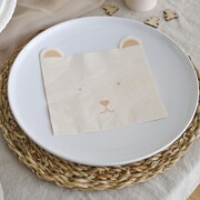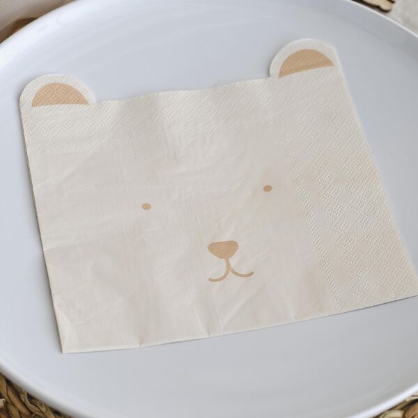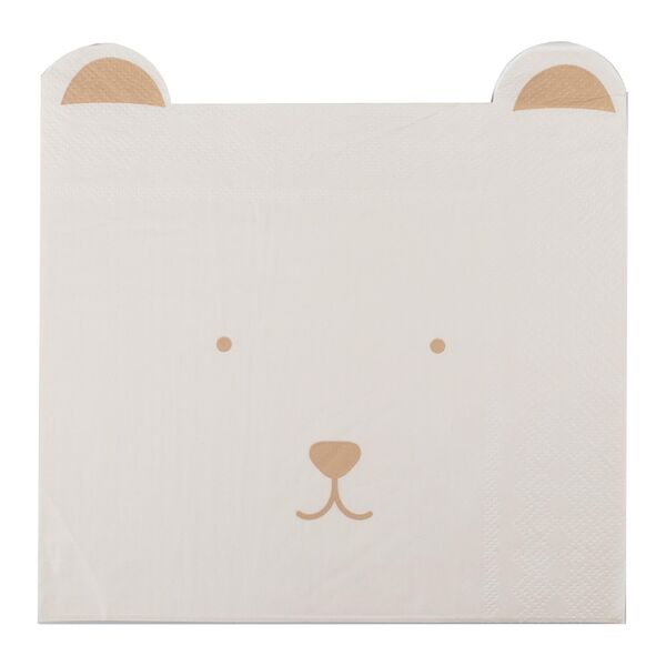 These napkins measure approx. 33cm x 33cm when unfolded and feature a cute teddy bear face with shaped ears - they have both open-eye and closed-eye faces on different sections of the napkin.