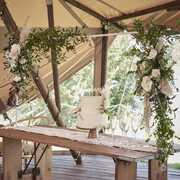 The frame has adjustable width from approx. 128cm to 240cm making it perfect for perfect for your bridal table, grazing or buffet tables, cake table, guest book signing table and more. (You can use the frame on a table narrower than 128cm but the top pole will extend past the vertical poles to some degree).