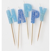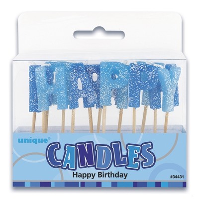 These glitzy blue “Happy Birthday” candles are perfect for anyone’s birthday cake! With each letter measuring approx. 3cm in height (not including toothpick they are supported on), they’re sure to make the cake look as good as it tastes!