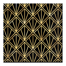 Glitz & glam black & gold metallic print lunch napkins - perfect for a 20s themed party! Each napkin measures approx. 16cm x 16cm (32.7cm x 32.7cm when folded out.) 16 in a pack.