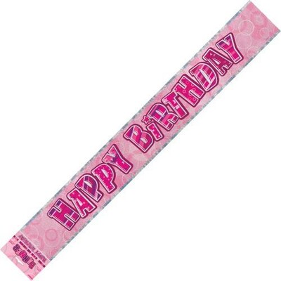 This glitz pink "HAPPY BIRTHDAY" banner is perfect for any birthday party! Measuring 3.6m in length, 13cm in width and easily hung up on any surface, it's sure to be a big hit at any birthday party!