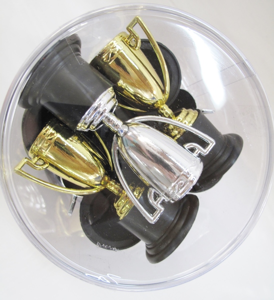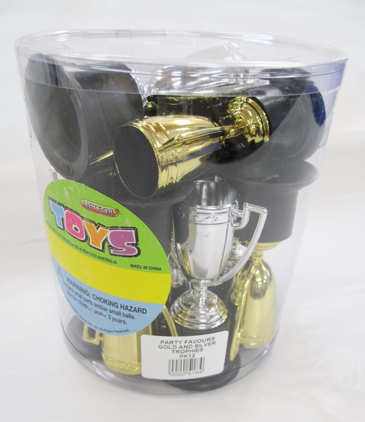 These gold and silver trophy party favours are perfect for any party, especially a sport themed party or Melbourne Cup! With 12 in a pack, each measuring approx. 9.5cm in height, they're sure to be a big hit! Perfect for filling a piñata, loot bags, table decorations or for simply giving out to party guests!