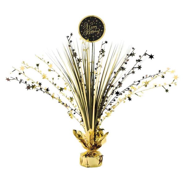 This black and gold Happy Birthday centrepiece is perfect for any birthday celebration!