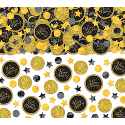 70g packet of assorted gold & black birthday confetti, perfect for any birthday celebration!