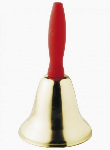 Gold bell with a red handle, perfect for a Santa costume! Bell measures approx. 18cm in total length (red handle measures approx. 10cm in length and gold bell part measures approx. 8cm in length and 10cm in diameter at the cavity.)